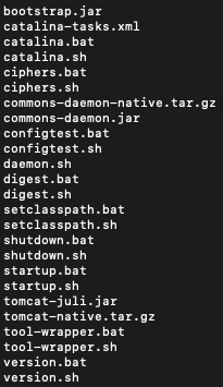 많은 실행파일이 있지만 shutdown.sh 와 startup.sh 파일을 사용해서 tomcat 서버를 종료하거나 실행하면됩니다.