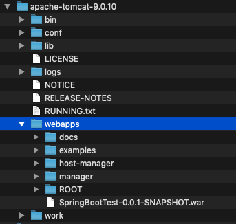 저는 Tomcat 9 를 설치한 다음 webapps 폴더 안에 .war 를 넣어주었습니다.