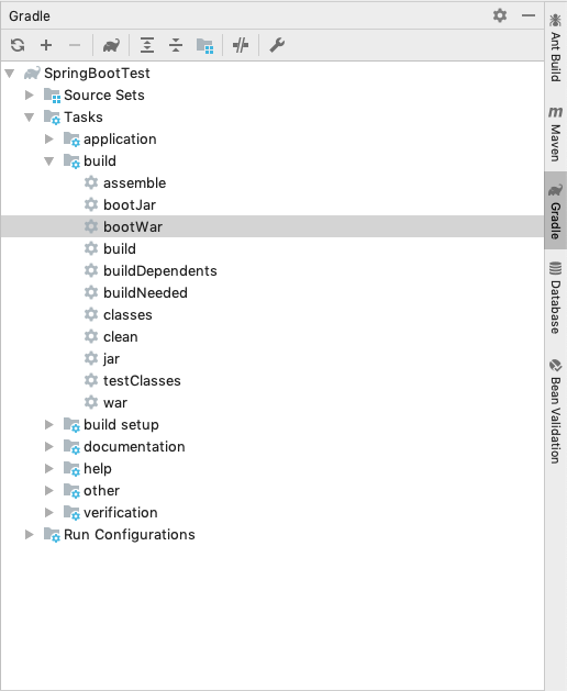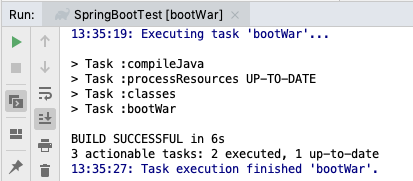 Tasks > build 안에 실행가능한 bootWar 스크립트를 더블클릭하면 됩니다.