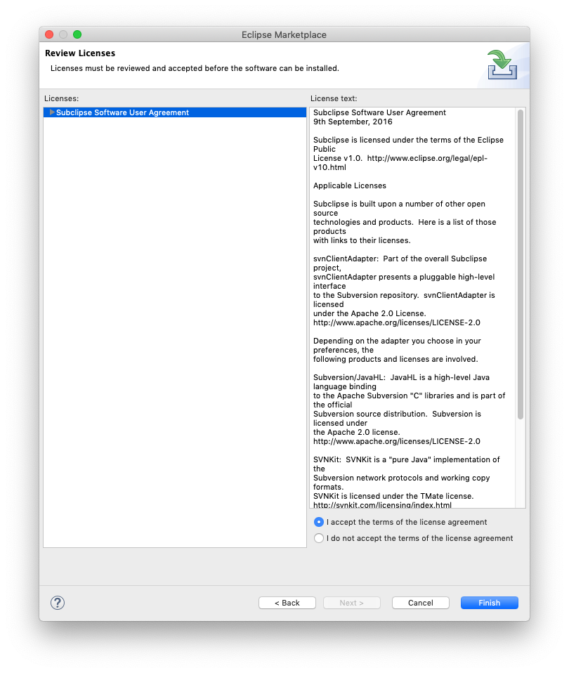 svn:// 으로 시작하는 주소를 넣어주고 Finish 버튼을 클릭합니다.