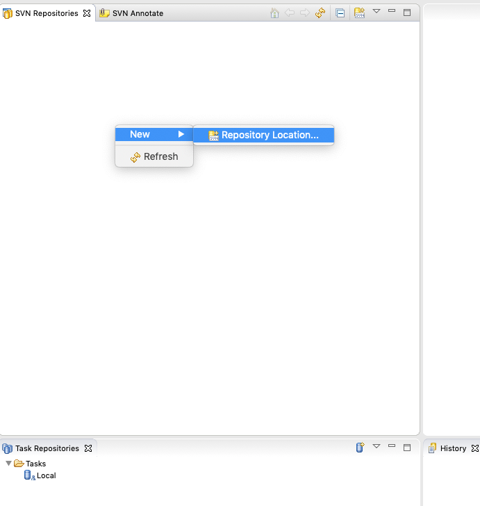 SVN Repositories 탭안에서 마우스 우클릭을 합니다.